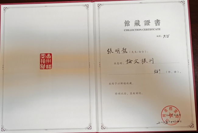 本次论文样刊捐赠,有利于充实名家专柜的收录资料,也有利于丰富市档案馆的馆藏内容。市档案局领导表示,感谢张明龙教授对本市档案工作的大力支持。
