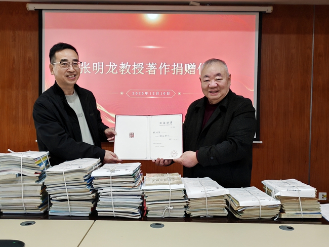 2025年12月10日,在台州市档案馆二楼会议室,举行“张明龙教授著作捐赠仪式”,由许宏志副馆长主持。