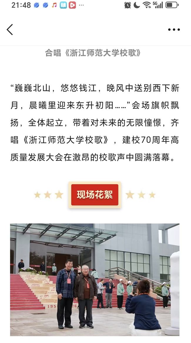 海内外各地高等院校代表、专家学者,各级党政机关、各地市的校友,来自教育界、科技界、企业界的校友,学校老领导,各级党政机关、企事业单位负责人,中小学校书记、校长,新闻媒体代表,老教师代表,高层次人才、民主党派和统战团体负责人、各地校友代表及在校师生代表共聚一堂,同庆浙师七秩芳华,共话高等教育使命担当。